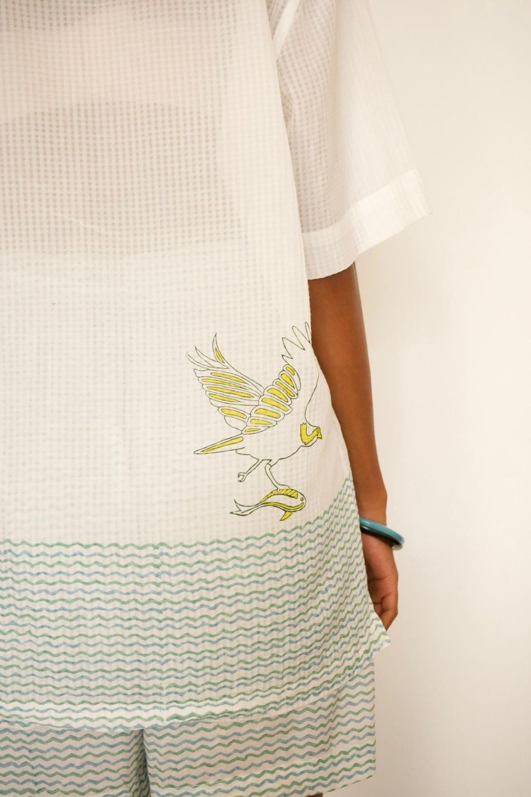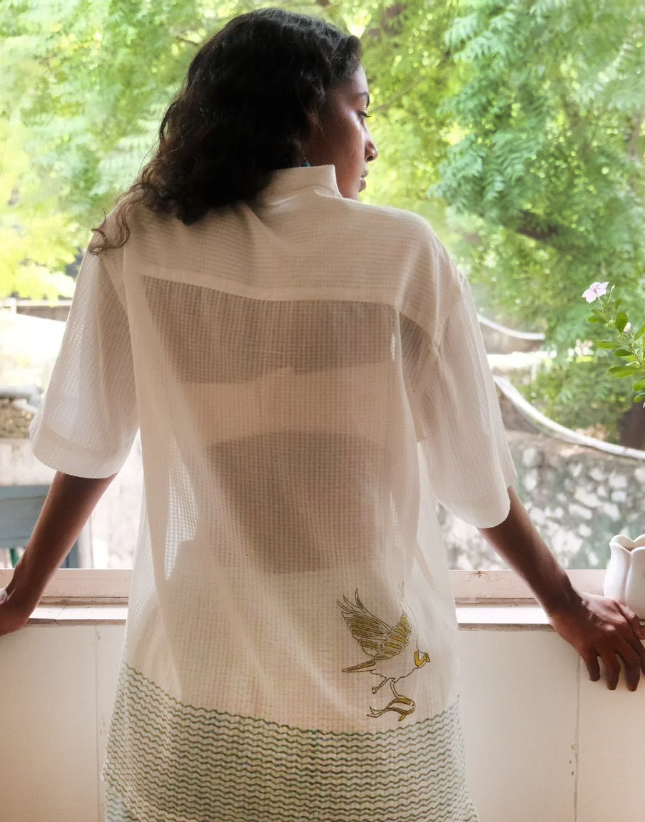 Dive into nature with our Sheer Fishing Bird Shirt, inspired by the picturesque Lake Chilika.