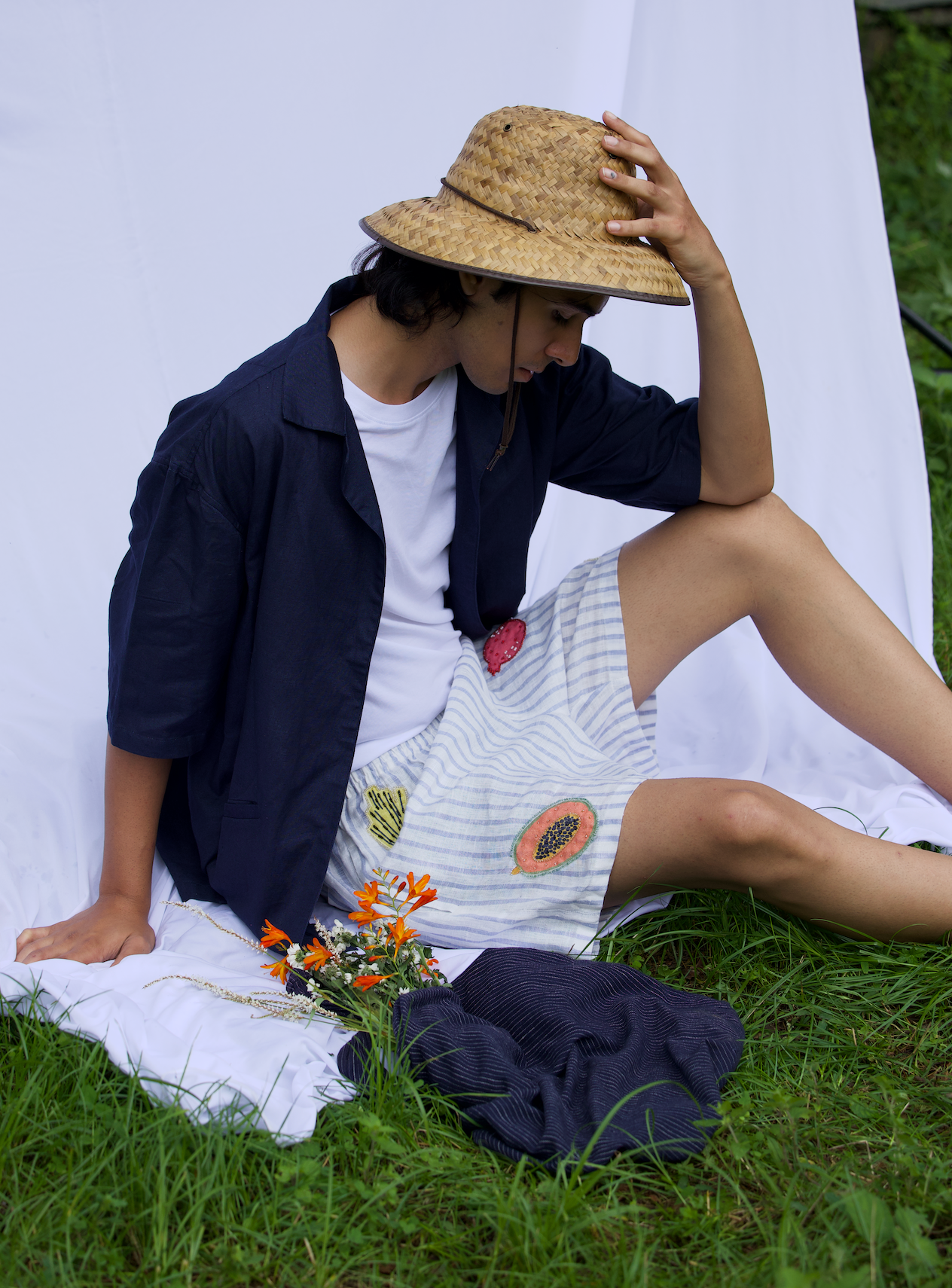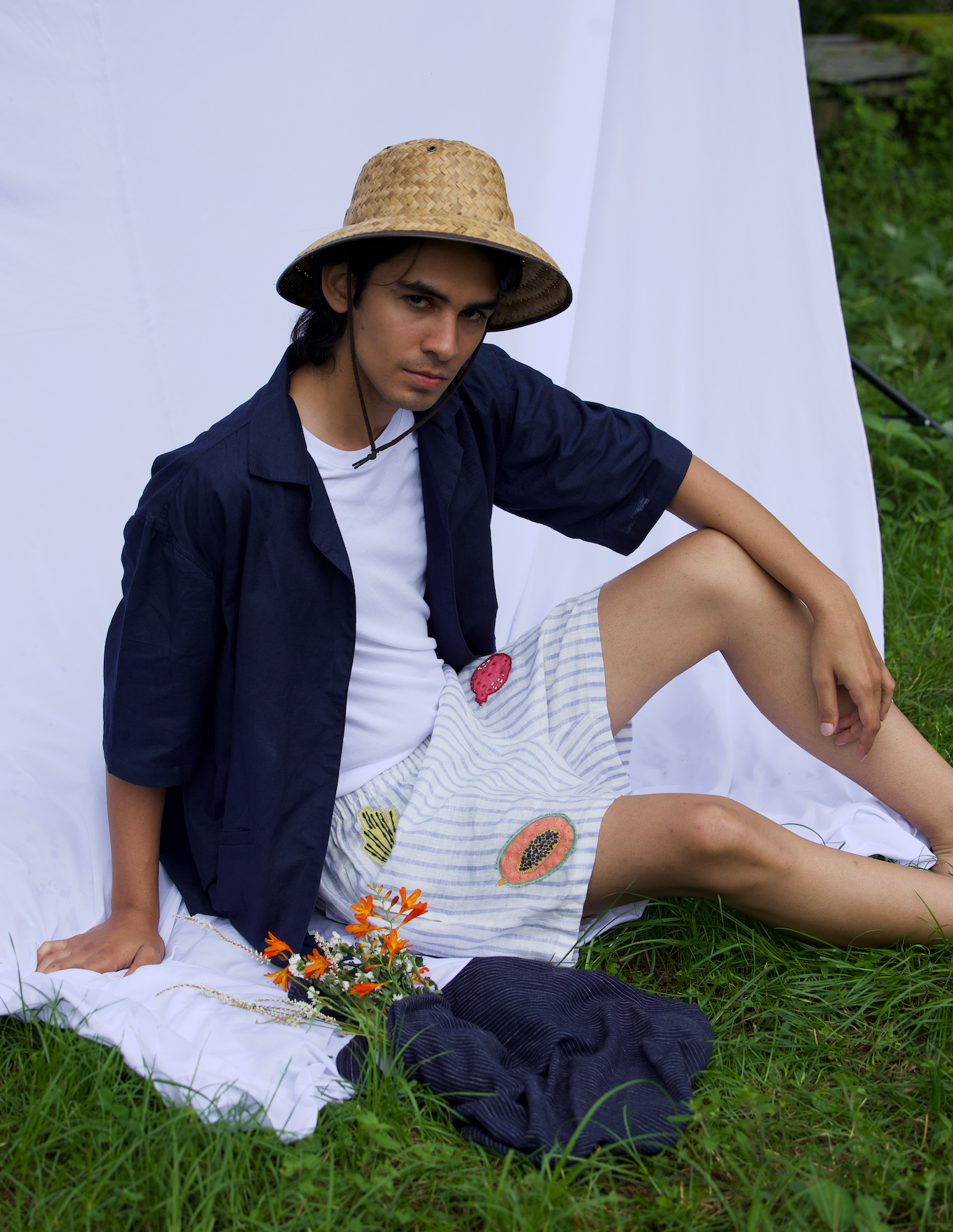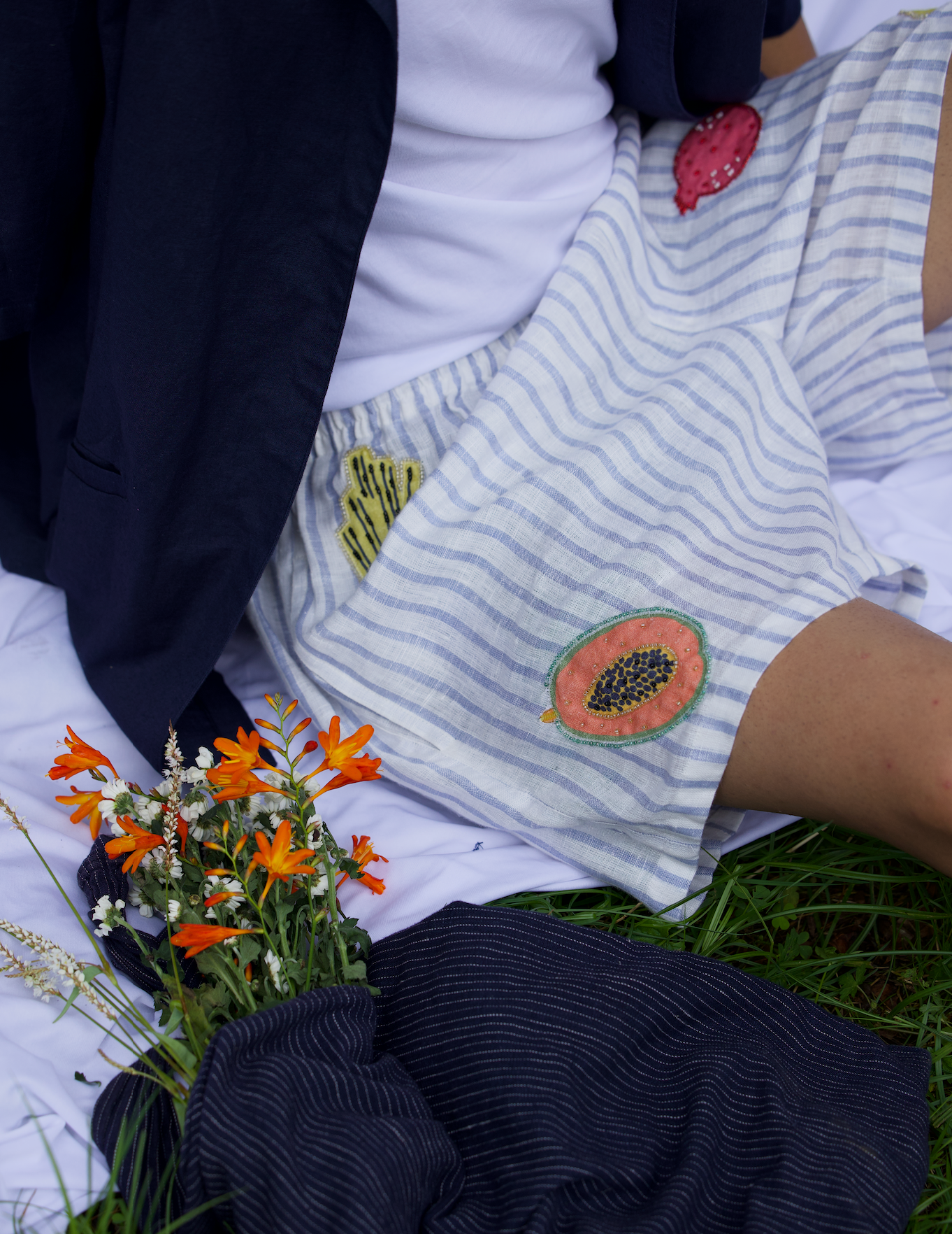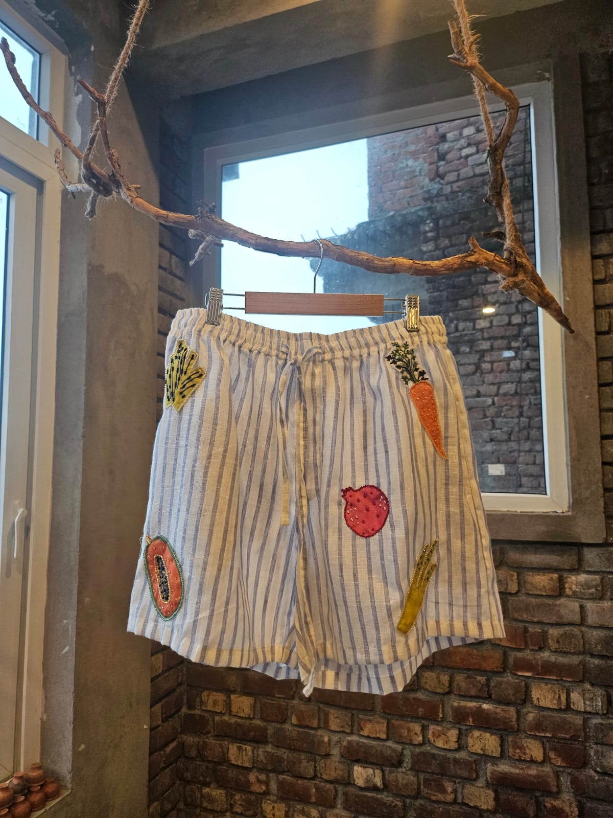 These playful mini shorts started as a creative experiment - we spotted adorable vegetable-cutout table mats at the local market and thought, "Why not wear your love for fresh produce?" Hand-embroidered onto premium linen, each pair features charming veggie motifs that celebrate farm-to-table style.