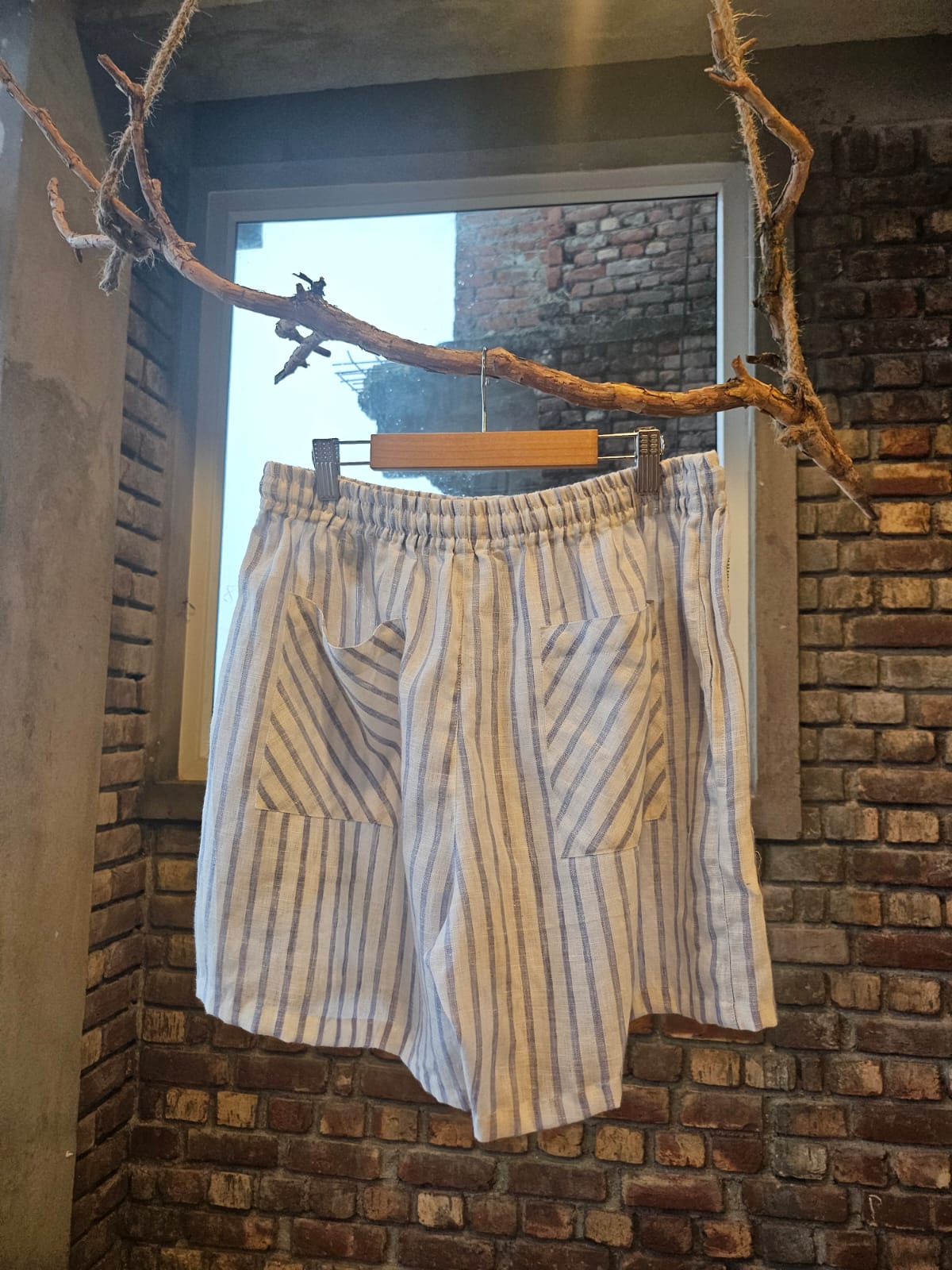 Hand Embroidered Linen Grocery Shorts