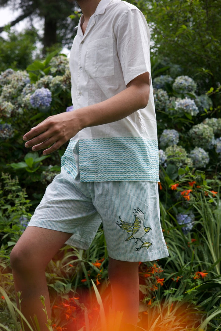 Experience the charm of nature with our Lake Bird Short, inspired by the serene beauty of Lake Chilka. These shorts feature a unique block-printed design of a bird fishing, perfect for bringing a touch of nature to your wardrobe. Handcrafted with care, each pair is made from breathable fabric to keep you cool and comfortable. Ideal for Oceans Week and beach vacations, these shorts not only celebrate your love for nature but also support sustainable fashion. Made in India with dedication to craftsmanship and the environment. Perfect for beach vacations.